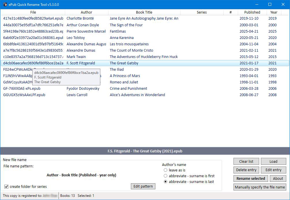 The ePub Quick Rename Tool is a lightweight program designed to simplify and speed up the process of renaming ePub files.